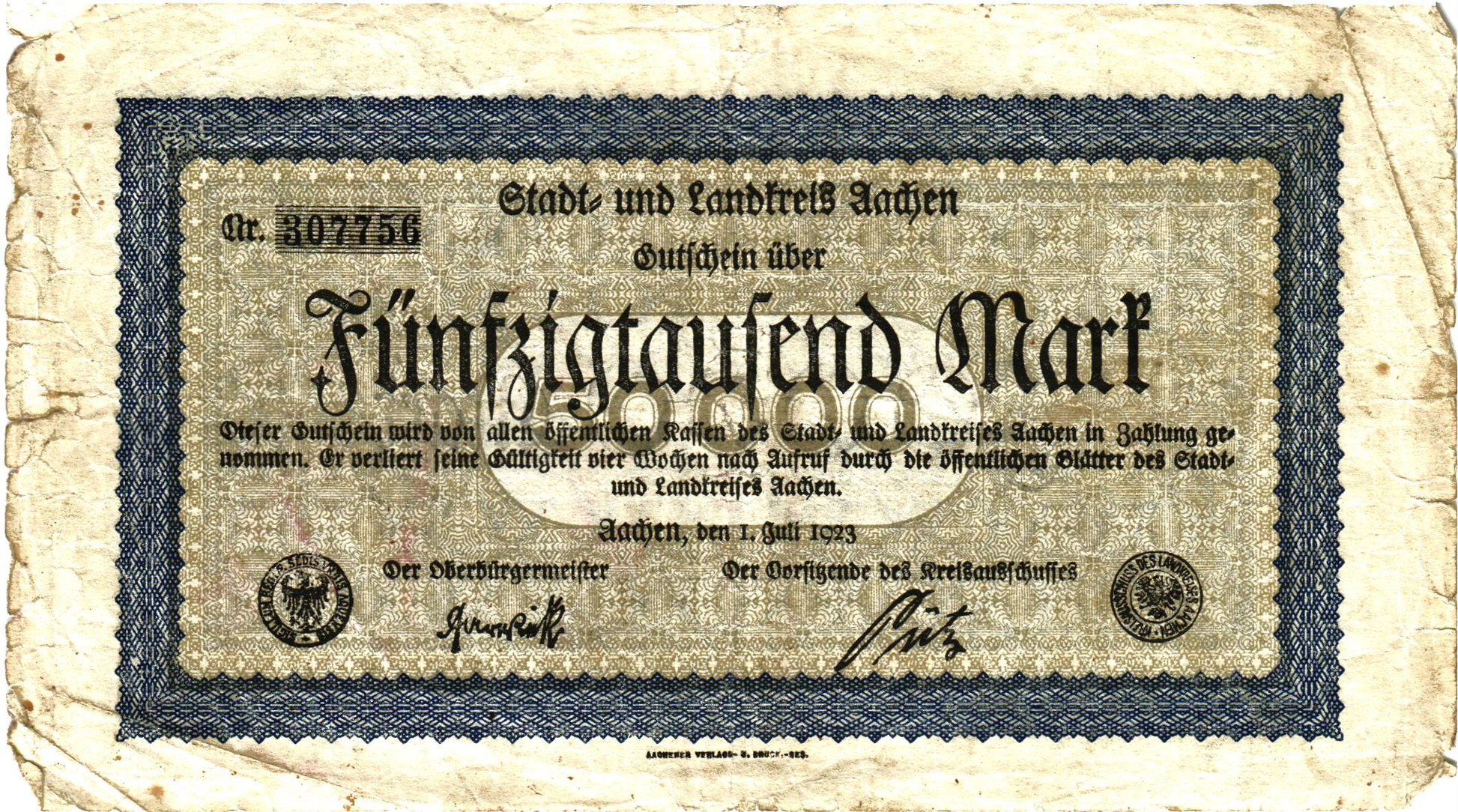 Emergency Issue - Notgeld Germany 50000 Mark 1923 Aachen