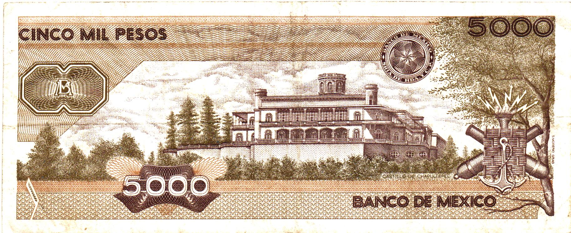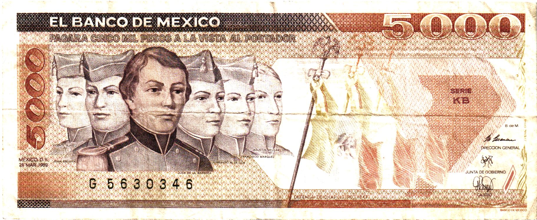 Mexico 5000 Pesos 1989 (28/3), P88c, VG